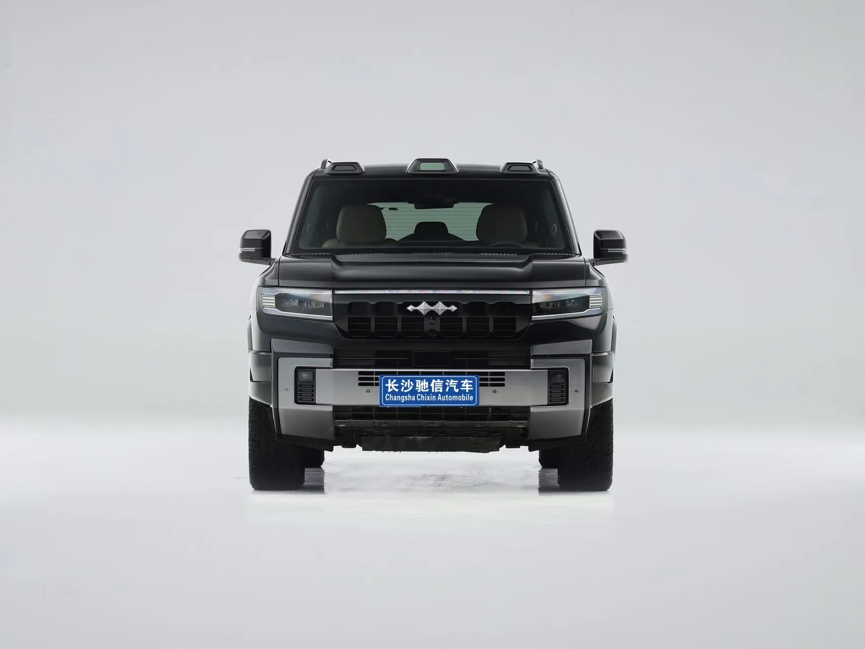 The Leopard 8 embraces a highly recognizable "futuristic starship" design philosophy, seamlessly blending the rugged霸气 (dominance) of hardcore off-roading with the futuristic allure of modern technology. Its boxy, robust body profile features a semi-enclosed front grille and unique C-shaped daytime running lights, paired with a full-width light bar that, when illuminated, resembles energy beams from deep space—exuding technological sophistication and exceptional nighttime辨识度 (visibility). On the sides, clean, flowing lines outline a muscular silhouette, while the floating roof and hidden door handles enhance both style and aerodynamic efficiency. The rear-mounted spare tire with a环绕式 (surrounding) protective cover further reinforces its rugged off-road ethos and adventurous spirit.
